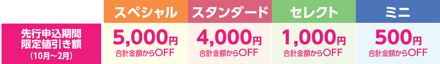 - 各種スマイルパックは、いずれも一括でお申込みいただいた場合に適用いたします。別々でお申込みいただいた場合は割引の対象外です。